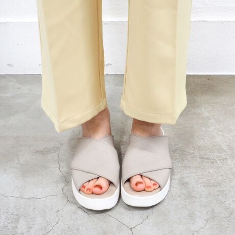 足元がすっきり見えするクロスデザインは、甲全体を深く包み込むので安定感も◎ やわらかでストレスのない履き心地で、夏の定番アイテムになりそう。