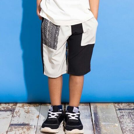【お揃い】5.5分丈ネイティブ柄切り替えウェザーパンツ(100~160cm)