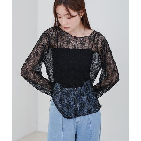 柔らかくて伸びがいいレーストップスの登場です!レースの中にお花柄がちりばめられているのが目を惹きます。全体的に伸びがよくゆったりとして着ていただけるため、二の腕部分や首回りはぴたっとせず余裕があります。中にキャミソールを合わせてトップスとして着たり、ワンピースのインナーとして着たり、Tシャツの中に着てちら見せしたりと着回し抜群のアイテムになっています!お色味によって雰囲気がガラッと変わるので2色お持ちでもお楽しみいただけること間違いなしです!