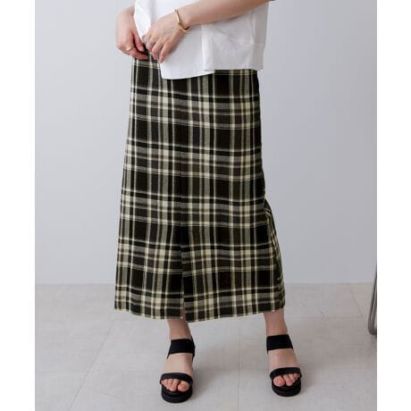 チェックの色遣いが映える、さらっとしたサマーツイード調のタイトスカートです。普段のトップスに合わせるだけで一気に存在感をアップしてくれる!定番のタイトシルエットで、トップスをインしてすっきりも、アウトでカジュアルにも着用して頂けます。長めのトップスとも相性がいいので、タイトスカートながら気になる部分をカバーするコーディネートもおすすめです。後ろは楽ちんな後ろゴム仕様で、前はすっきり見え。