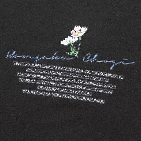 モチーフのお花をあしらった着回し力抜群のシンプルな黒シャツですが、英字ロゴをよく読むと・・・!?