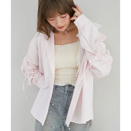 袖のドロストを調節することで、シンプルなシャツにも女性らしさがプラスされ、華やかな印象に。
