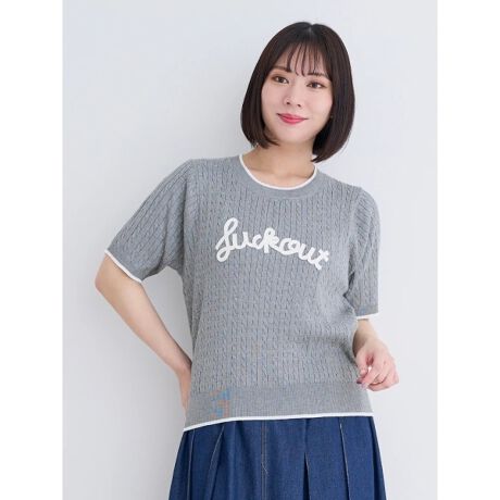 立体感のあるニットロゴ刺繍がコーデのアクセントに映えるニットトップス