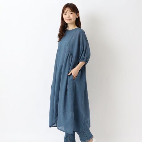 丸みのあるドルマン袖と、ハイウェストの切替が可愛らしい印象のワンピースです。