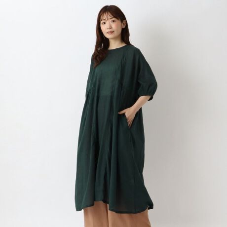 丸みのあるドルマン袖と、ハイウェストの切替が可愛らしい印象のワンピースです。