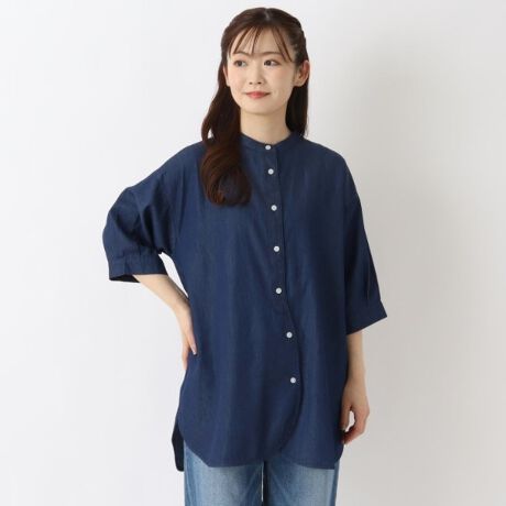 インディゴ 5分袖スタンドカラーシャツ