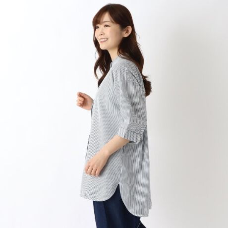インディゴ 5分袖スタンドカラーシャツ