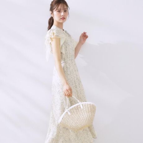繊細でやわらかなサテン素材に、やさしい花柄をプリントした素材を使用したデザインワンピース。