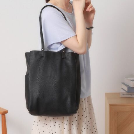『両あおりの三層構造で、仕分けしながらたっぷり収納が可能な縦型トート』