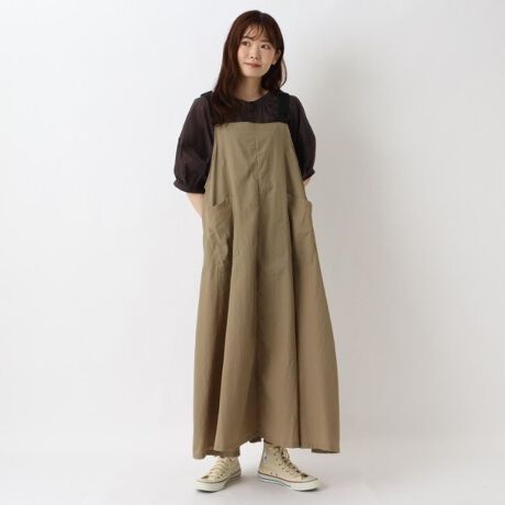 ワークテイストな幅広ゴムと、程よくハリのあるナイロン生地が相性の良いジャンパースカートです。
