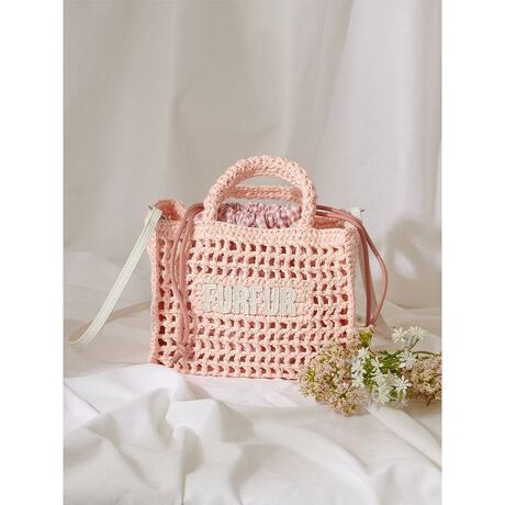 毎年人気のラフィアトートバッグを大幅アップデートし、今回は1つ1つ手編みで作成。クラフト感を残した表現に拘り、合皮を文字の形にくり抜いてブランドロゴを落とし込みました。サイドのスナップ釦で形を変えて楽しめるのも嬉しいポイント。例年とはイメージを変えた配色で、限定色も含めた11色展開で登場。種類豊富なブローチやチャームをつけてあなただけのオリジナルバッグに。
