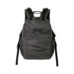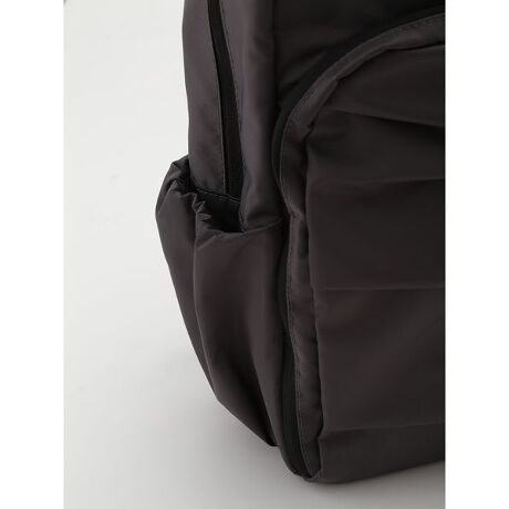 充実したポケットでオンオフに活躍するバックパックは、タックデザインを加え、ディテールの素材を変更することでモード感ある印象に仕上げています。
