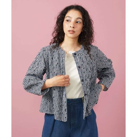 ボタンの開閉で異なる着用イメージが叶います。開けてジャケットライク、閉じてブラウス仕様などお好みの着こなしをお楽しみください。