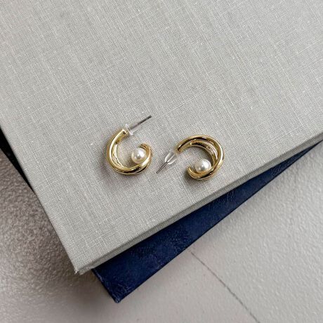 女性らしさをプラスしたパール付きカールピアス