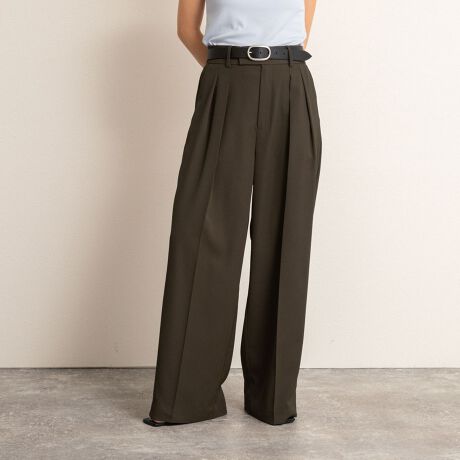 ・落ち感のあるきれいめ見え素材ながら、ワイドで今っぽいラフな印象に