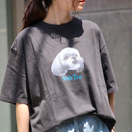 GLOSTER新定番である犬猫プリントシリーズにピグメント加工をしたクルーネックプリントTシャツが再登場!