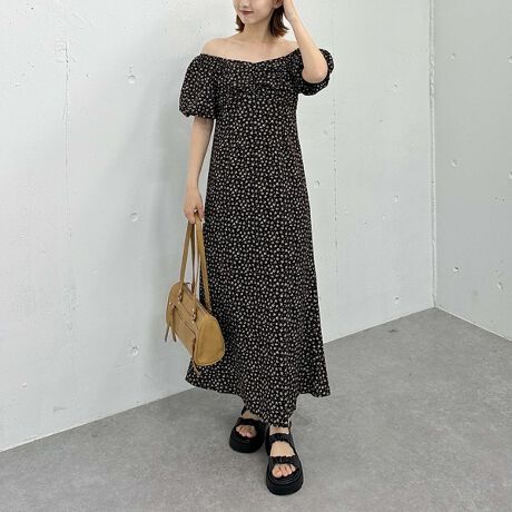 小花柄が可愛い、オフショルダーにもなる2wayワンピース。