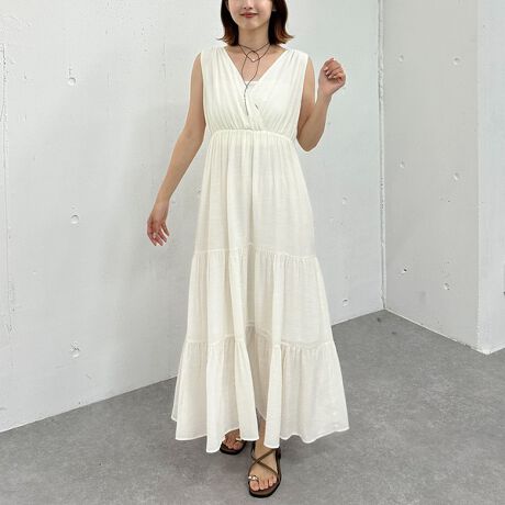 軽めの生地感で夏にぴったりなノースリーブワンピース。