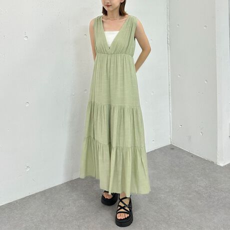 軽めの生地感で夏にぴったりなノースリーブワンピース。