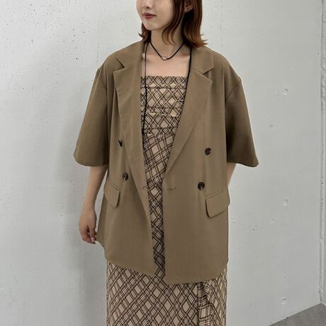 ハーフスリーブ麻調テーラードジャケット