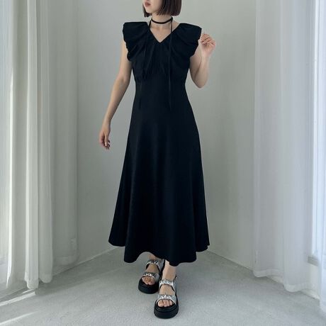 Vネックバルーンノースリワンピース