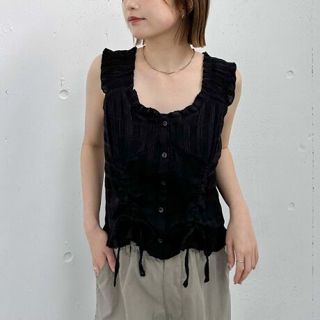 ノースリーブですが肩が太めなので肩出しが苦手な方にもおすすめ。
