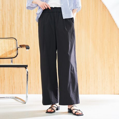 コットンのような肌ざわりとハリ感が魅力の上品ワイドパンツ