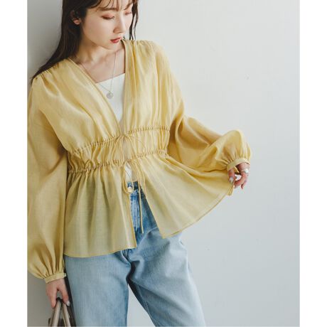 シアー楊柳ギャザーブラウス