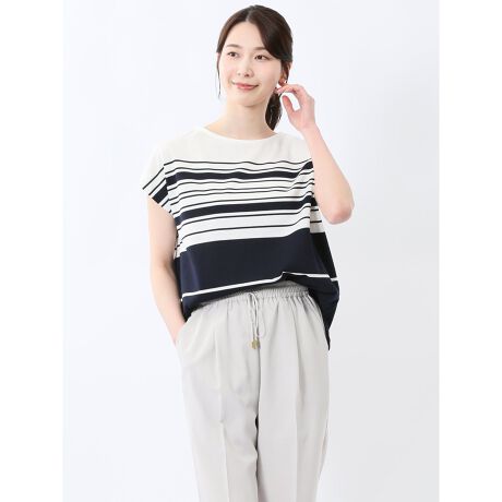 ランダムボーダー フレンチスリーブ プルオーバー
