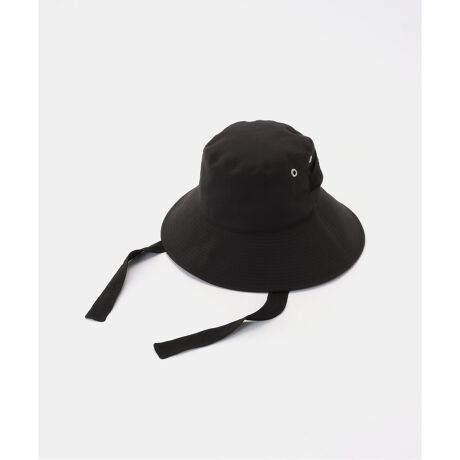 サイドに垂れるストリングは、そのままではもちろん、顎で結んだり取り外したりとアレンジできるのがポイント。