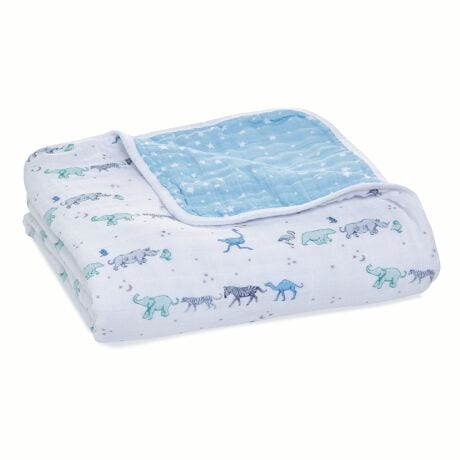 aden + anais(エイデンアンドアネイ)を代表するコットンモスリン素材でつくられたブランケット。ダブルガーゼ4層構造で厚みがあり、やさしい肌ざわりです。 2025 年の干支、巳(へび)をモチーフにした新作