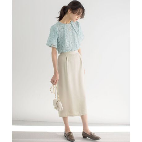 光沢感のある素材が新しいリラックス感のあるタイトスカート