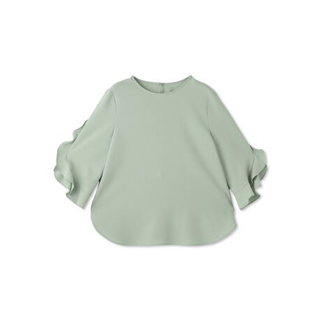 軽やかで上品なアムンゼン素材を使用した、フェミニンなラッフルスリーブブラウス。