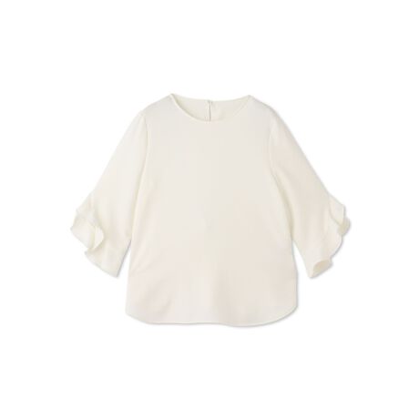 軽やかで上品なアムンゼン素材を使用した、フェミニンなラッフルスリーブブラウス。