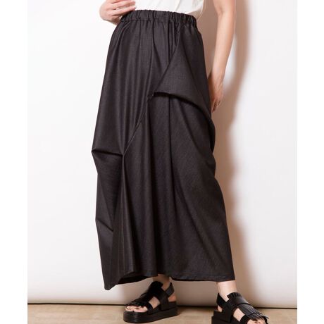 [型番:599006-232S]立体的なタックドレープがモードなスカートは、軽いテンセルデニム風の素材でカジュアルダウン。存在感のあるデザインは、単調になりがちな夏のコーデに奥行きをもたらす。===========================透け感: なし伸縮性: 僅かにあり光沢感: 僅かにあり裏地: なし素材について: とろみのある、テンセルデニム風の軽めな素材感===========================