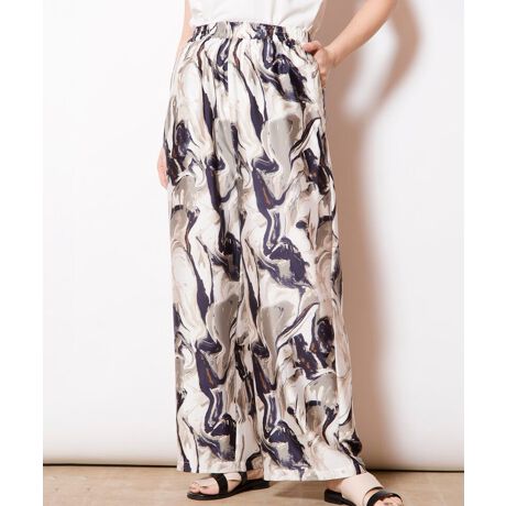 [型番:599006-234P]着るだけでスタイリングが華やかになる、夏らしいマーブルプリント。ラフになりがちな夏に嬉しいツヤっぽい素材感と、シルエットは美脚効果の高いテーパードライン。===========================透け感: ほぼなし伸縮性: なし光沢感: ややあり裏地: なし素材について: マットな光沢のある、軽めのプリント地===========================