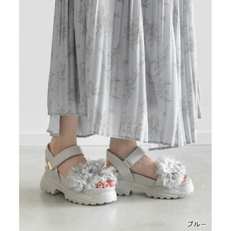 様々な素材を組み合わせ、繊細なボリューム感にこだわったフラワースポーツサンダル。
