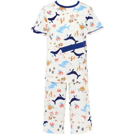 【男児用パジャマ】トップス袖丈:半袖(3分袖)・ボトム脇丈:7分丈・かぶりタイプ●くじらやクマノミなど海の生き物たちが楽しそうに暮らす楽園をイメージしたプリント柄パジャマ●カンガルーポケット付きで移動教室などにもおすすめ●本体に、やわらかく洗濯の取り扱いもしやすい、パジャマの定番素材である綿100%天竺素材を使用(30SZ綿天竺素材)・肌側に名前が記入できるネーム付き・ボトムの前肌側にネームを付けることで、はく時に前後の目安になりやすい・ウエストゴム取り替え口あり【サイズ詳細】3:身幅31.5cm 着丈40.0cm 肩幅25.5cm 袖丈13.5cm ボトム脇丈38.0cm 裾まわり29.0cm 股下(レングス)20.0cm ウエスト42.0cm ヒップ70.0cm4:身幅32.5cm 着丈44.5cm 肩幅28.5cm 袖丈14.5cm ボトム脇丈44.5cm 裾まわり32.0cm 股下(レングス)25.0cm ウエスト46.0cm ヒップ76.5cm6:身幅36.0cm 着丈49.0cm 肩幅31.5cm 袖丈16.5cm ボトム脇丈54.5cm 裾まわり37.0cm 股下(レングス)33.5cm ウエスト48.0cm ヒップ83.0cm8:身幅43.0cm 着丈55.5cm 肩幅36.5cm 袖丈18.5cm ボトム脇丈59.5cm 裾まわり40.5cm 股下(レングス)36.5cm ウエスト52.0cm ヒップ90.0cm10:身幅47.5cm 着丈61.5cm 肩幅40.5cm 袖丈21.5cm ボトム脇丈71.5cm 裾まわり45.0cm 股下(レングス)45.0cm ウエスト55.0cm ヒップ100.5cm※出来上がり寸法を表示しております※サイズ詳細の寸法には多少の差異がございます
