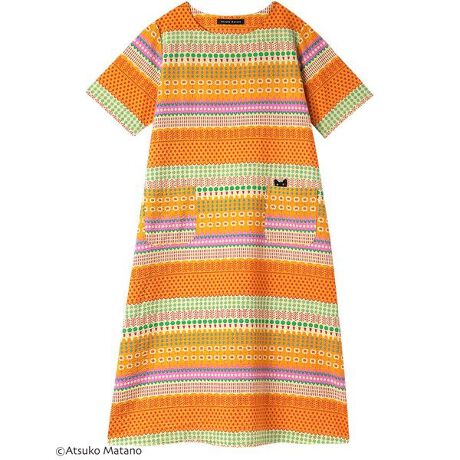 【ワンピース(5分袖)】クリエーター“俣野温子”氏がデザインする、甘くなりすぎない大人かわいいテキスタイルとカラーで、くつろぎ時間を楽しく過ごせるパジャマ&ルームウェア・薄くて軽い綿100%のローンリップル素材を使用・ポコポコとした凹凸があるため肌ばなれがよく、ベタつきやすい夏におすすめ・何種類もの細かな模様をボーダー調に組み合わせた、スペインをイメージした美しいプリント柄・ポケットから顔をのぞかせている黒猫のアップリケがデザインポイント【サイズ詳細】M:身幅53.5cm 着丈107.5cm 身丈111.5cm 肩幅39.0cm 袖丈24.5cmL:身幅57.5cm 着丈107.5cm 身丈112.0cm 肩幅40.5cm 袖丈24.5cmLL:身幅61.5cm 着丈108.5cm 身丈113.0cm 肩幅42.0cm 袖丈25.0cm3L:身幅65.5cm 着丈109.5cm 身丈114.0cm 肩幅43.5cm 袖丈25.0cm※出来上がり寸法を表示しております※サイズ詳細の寸法には多少の差異がございます※アイテムによって柄の出方が異なりますのでご了承ください。