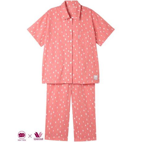 【パジャマ(5分袖8分丈パンツ)】・「新しい日本文化の創造」をコンセプトに、現代のライフスタイルに寄り添うものづくりを展開する京都のブランド「SOU・SOU(R)」の柄「ちぎれ雲」をプリント・古くからちぢみ織物の産地として知られる滋賀県高島地方の「高島ちぢみ(R)」を使用・横糸に強い撚りをかけることでできる凹凸感のあるシボ(シワ模様)が特徴・通気性、吸汗速乾性のよい素材のため、汗ばむ夏に涼しさを感じるサラッとした肌ざわり・肩にゆとりをもたせて、腕まわりを動きやすく・ウエストゴムを2本使っているので、おなかまわりをしめつけにくい※「SOU・SOU(R)」は、若林株式会社の登録商標です※「高島ちぢみ(R)」は高島織物工業協同組合の登録商標です【サイズ詳細】M:身幅53.0cm 着丈65.5cm 身丈68.5cm 肩幅46.0cm 袖丈21.0cm ボトム脇丈82.0cm 裾まわり44.0cm ウエスト60.0cm ヒップ105.0cm 股下(レングス)54.0cmL:身幅57.0cm 着丈65.5cm 身丈68.5cm 肩幅47.5cm 袖丈21.0cm ボトム脇丈82.5cm 裾まわり46.0cm ウエスト65.0cm ヒップ109.0cm 股下(レングス)53.5cm※出来上がり寸法を表示しております※アイテムによって柄の出方が異なりますのでご了承ください。【ワコール 睡眠科学】“眠る時間を、夢の時間に”睡眠が豊かになれば、毎日の暮らしはもっと活力に満ちたものになる。“眠る時間を、夢の時間に”をコンセプトに、パジャマをはじめ睡眠アイテムを幅広くそろえ、喜びあふれる明日へと導きます。