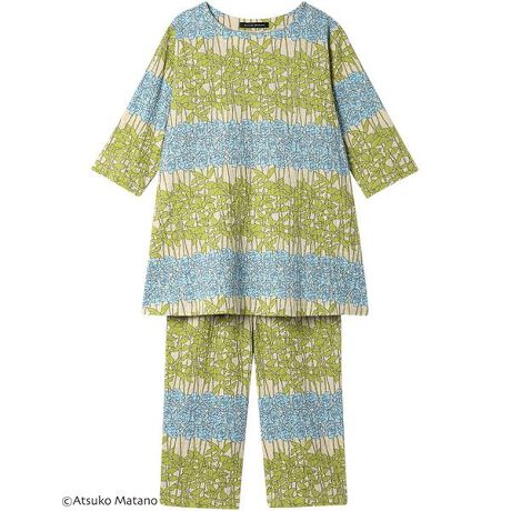 【パジャマ(7分袖8分丈パンツ)】クリエーター“俣野温子”氏がデザインする、甘くなりすぎない大人かわいいテキスタイルとカラーで、くつろぎ時間を楽しく過ごせるパジャマ&ルームウェア・薄くて軽い綿混のボイルシャーリング素材を使用・凹凸があるため肌ばなれがよく、ベタつきやすい夏におすすめ・クシュっとした素材感と芍薬のプリントがエレガントなデザイン・ゆったりとしたリラックス感のあるシルエット・シワが気になりにくく軽いので、旅行にもぴったり【サイズ詳細】M:身幅53.5cm 着丈70.0cm 身丈74.0cm 肩幅39.0cm 袖丈38.5cm ボトム脇丈82.0cm 裾まわり45.0cm ウエスト58.0cm ヒップ107.0cm 股下(レングス)53.0cmL:身幅57.5cm 着丈70.0cm 身丈74.0cm 肩幅40.5cm 袖丈38.5cm ボトム脇丈82.5cm 裾まわり47.0cm ウエスト63.0cm ヒップ111.0cm 股下(レングス)53.0cmLL:身幅61.5cm 着丈71.0cm 身丈75.0cm 肩幅42.0cm 袖丈39.0cm ボトム脇丈83.0cm 裾まわり50.0cm ウエスト68.0cm ヒップ116.0cm 股下(レングス)53.5cm3L:身幅65.5cm 着丈72.0cm 身丈76.5cm 肩幅43.5cm 袖丈39.0cm ボトム脇丈83.5cm 裾まわり53.0cm ウエスト73.0cm ヒップ121.0cm 股下(レングス)53.0cm※出来上がり寸法を表示しております※サイズ詳細の寸法には多少の差異がございます※アイテムによって柄の出方が異なりますのでご了承ください。