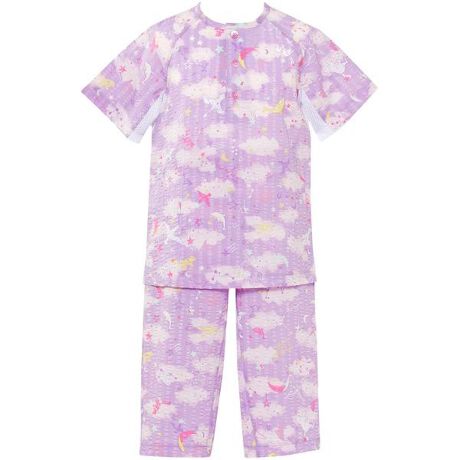 【キッズ用パジャマ(ユニセックス)】トップス袖丈:半袖(3分袖)・ボトム脇丈:7分丈・途中開きタイプ[睡眠科学 KIDS【涼感エアスルーパジャマ】]●暑さやムレが気になるお子さまに、通気性のよい生地と子どもの寝相を考えたパターン設計 汗をかきやすい脇下には通気性のよいメッシュ素材を使用し、ムレにくいさらっと快適設計 トップスの裾にスリットを入れ、裾が前後に広がりやすくし、窮屈感の少ない着ごこちに●ズボンにマチ布を作ることによって、足を広げやすく、動きやすい ズボンの股上を深くすることで、おなかがすっぽりかくれる設計●本体に、綿100%ローンリップル素材を使用。表面に立体的な凹凸があり、ムレにくく、サラサラ 80番手の細い糸で織られるローン素材は、軽量で肌ざわりがなめらかな上品な風合い(80ローンリップル素材)●夏の夜空に輝く星座と、ハクチョウや親子クマなどのモチーフをカラフルに描いたプリント柄・ユニセックスで着用できるデザイン・肌側に名前が記入できるネーム付き・ボトムの前肌側にネームを付けることで、はく時に前後の目安になりやすい・ウエストゴム取り替え口あり【サイズ詳細】3:着丈41.5cm 裄丈23.0cm ボトム脇丈38.0cm 裾まわり29.0cm 股下(レングス)20.0cm ウエスト42.0cm ヒップ70.0cm4:着丈46.5cm 裄丈24.5cm ボトム脇丈44.5cm 裾まわり32.0cm 股下(レングス)25.0cm ウエスト46.0cm ヒップ76.5cm6:着丈50.5cm 裄丈27.5cm ボトム脇丈54.5cm 裾まわり37.0cm 股下(レングス)33.5cm ウエスト48.0cm ヒップ83.0cm8:着丈57.0cm 裄丈32.0cm ボトム脇丈59.5cm 裾まわり40.5cm 股下(レングス)36.5cm ウエスト52.0cm ヒップ90.0cm10:着丈63.5cm 裄丈36.0cm ボトム脇丈71.5cm 裾まわり45.0cm 股下(レングス)45.0cm ウエスト55.0cm ヒップ100.5cm12:着丈68.0cm 裄丈39.0cm ボトム脇丈76.5cm 裾まわり47.5cm 股下(レングス)49.0cm ウエスト59.0cm ヒップ107.0cm12B:着丈73.0cm 裄丈41.5cm ボト