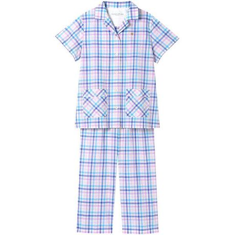 【パジャマ(4分袖9分丈パンツ)】毎日をもっと楽しく過ごせるように。嬉しいとき。不安なとき。ひとりのとき。家族といるとき。どんなときでもHAPPYなものを身につけて、笑顔になってもらいたい。デザイナー“津森千里”氏のそんな気持ちを表現したブランド。・本体に、表面に凹凸がある綿混のローン素材を使用・生地に凹凸があるので肌ばなれがよく涼しげな暑い季節向きの素材・多色使いの先染めチェック柄・左胸のネコのワンポイントがデザインのアクセントに【サイズ詳細】M:身幅53.0cm 着丈66.5cm 身丈69.5cm 肩幅42.0cm 袖丈18.0cm ボトム脇丈90.0cm 裾まわり48.0cm ウエスト58.0cm ヒップ109.0cm 股下(レングス)62.5cmL:身幅57.0cm 着丈67.5cm 身丈70.5cm 肩幅43.0cm 袖丈18.0cm ボトム脇丈91.0cm 裾まわり50.0cm ウエスト63.0cm ヒップ113.0cm 股下(レングス)62.5cm※出来上がり寸法を表示しております※サイズ詳細の寸法には多少の差異がございます