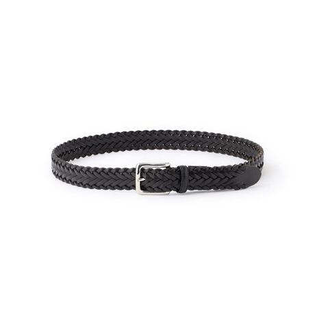 革を切り分け、職人の手で一本一本を丁寧に編み上げたレザーメッシュベルト。タンニン鞣しを施したオイルドレザーを使用し、焦がしエイジング加工により、ヴィンテージの質感を表現しました。