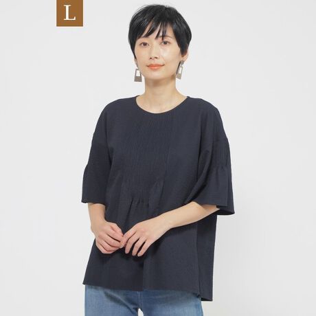 【L】【カタログ掲載品】【1枚で決まる】【ウォッシャブル】サッカーストレッチフレアブラウス