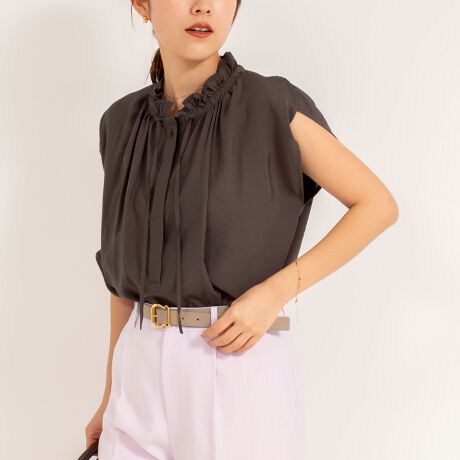 ・フリル衿とリボンが大人可愛いフレンチスリーブブラウス