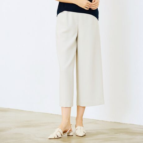 小柄さんにもコーディネートしやすいややワイドシルエットのパンツ。短め丈のトップスとも相性よく合わせられます。