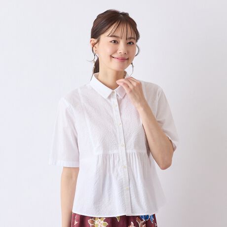 暑い夏に頼りになる半袖ブラウス。ナチュラルしわがある素材のため着用しわがつきにくいイージーケアが嬉しい。さらりとした手触りに綿100%の着心地の良さも人気の秘密。