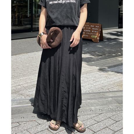 透け感があって上品な光沢感のあるロングスカートが登場。