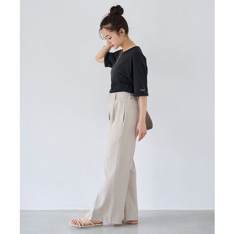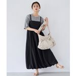 バスト上の切替えが、シルエットにさりげないメリハリをつけ、シンプルながらもこなれ感のある印象に♪